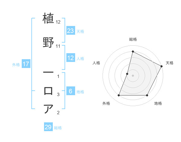 植野 一ロアさんを姓名の画数から五運を鑑定