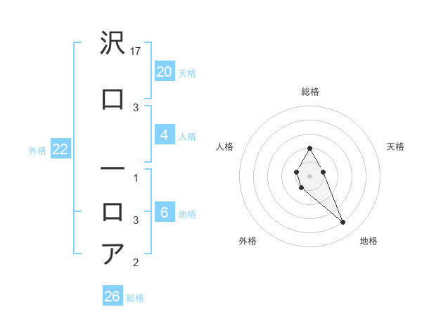 沢口 一ロアさんを姓名の画数から五運を鑑定