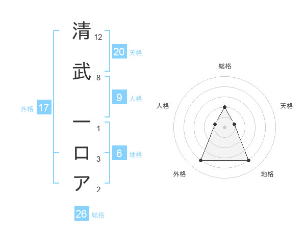清武 一ロアさんを姓名の画数から五運を鑑定