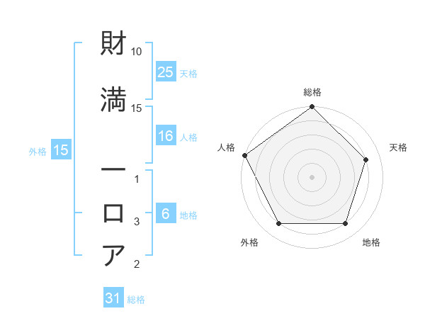 財満 一ロアさんを姓名の画数から五運を鑑定