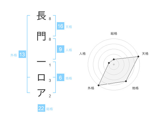 長門 一ロアさんを姓名の画数から五運を鑑定