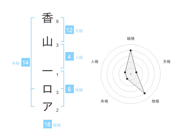 香山 一ロアさんの総格は18画の4点!