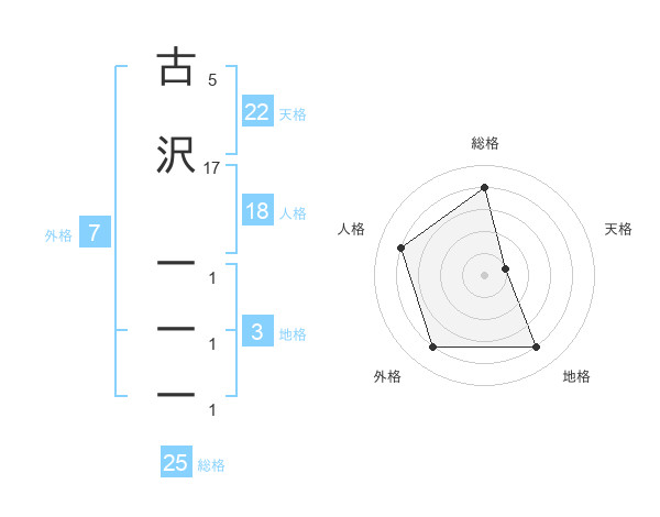 古沢 一一一さんを姓名の画数から五運を鑑定