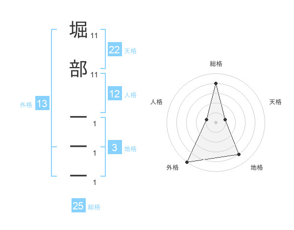 堀部 一一一さんを姓名の画数から五運を鑑定