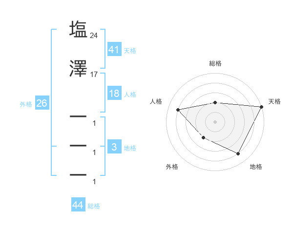 塩澤 一一一さんを姓名の画数から五運を鑑定