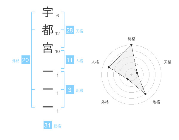 宇都宮 一一一さんを姓名の画数から五運を鑑定