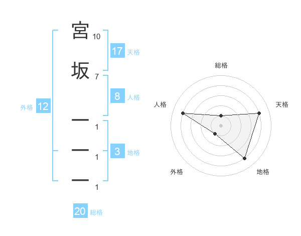宮坂 一一一さんを姓名の画数から五運を鑑定