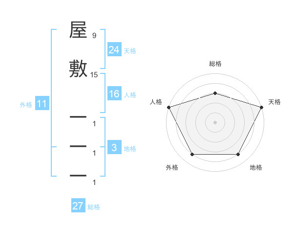 屋敷 一一一さんの総格は27画の3点!