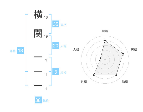横関 一一一さんの総格は38画の4点!