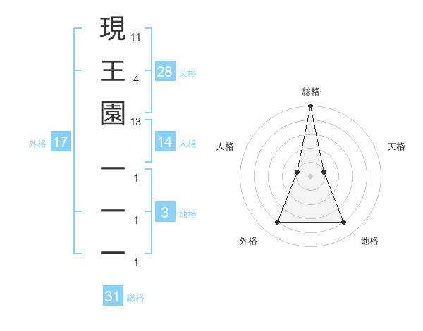 現王園 一一一さんを姓名の画数から五運を鑑定