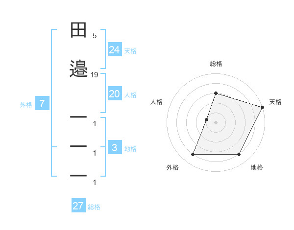 田邉 一一一さんを姓名の画数から五運を鑑定