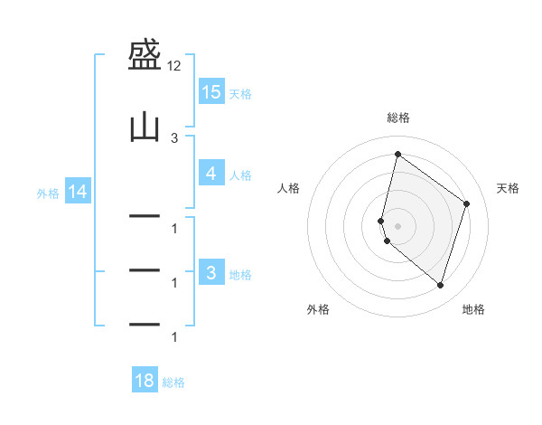 盛山 一一一さんの天格は15画の4点