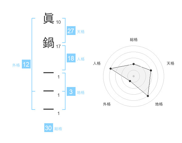 眞鍋 一一一さんを姓名の画数から五運を鑑定