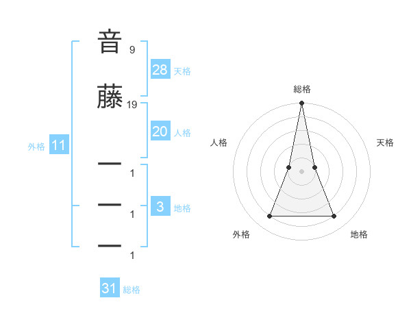 音藤 一一一さんを姓名の画数から五運を鑑定