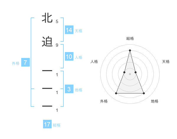 北迫 一一一さんを姓名の画数から五運を鑑定