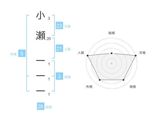 小瀬 一一一さんの人格は21画の5点!
