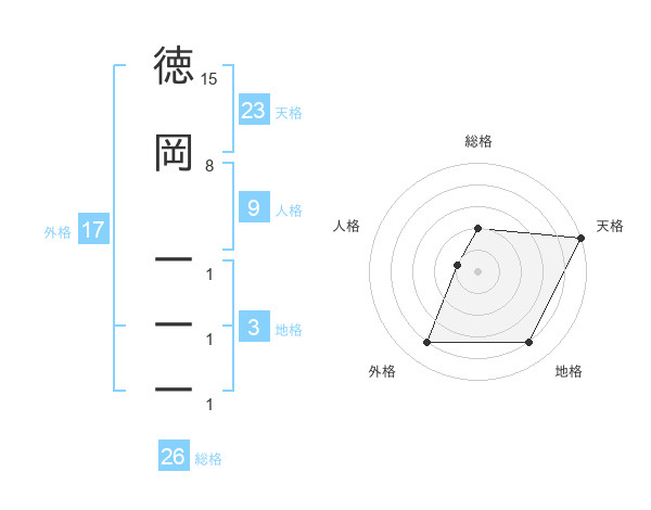 徳岡 一一一さんを姓名の画数から五運を鑑定