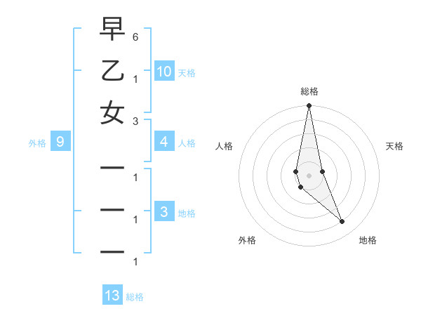 早乙女 一一一さんの総格は13画の5点!