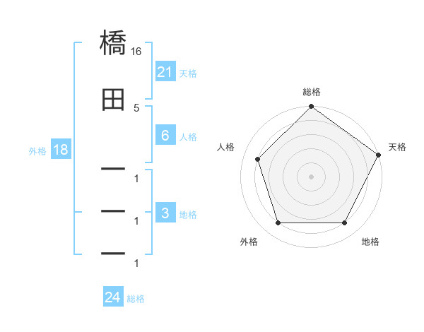 橋田 一一一さんを姓名の画数から五運を鑑定