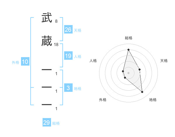 武蔵 一一一さんの総格は29画の4点!