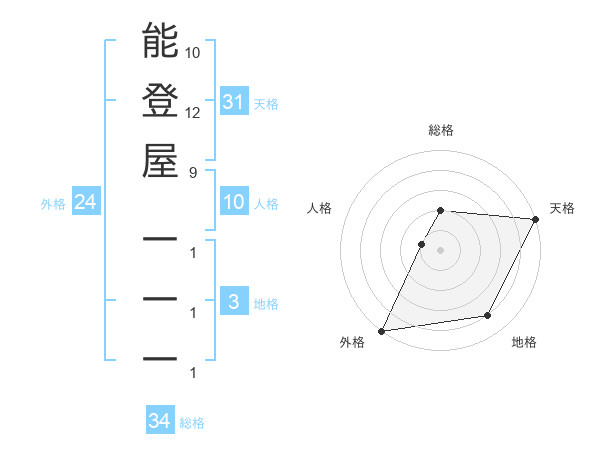 能登屋 一一一さんを姓名の画数から五運を鑑定