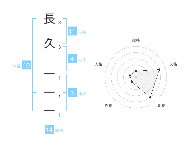 長久 一一一さんの総格は14画の1点!