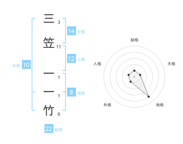 三笠 一一竹さんを姓名の画数から五運を鑑定