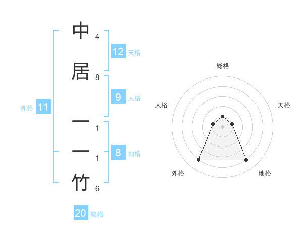 中居 一一竹さんを姓名の画数から五運を鑑定