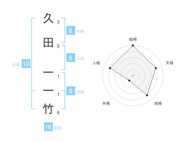 久田 一一竹さんを姓名の画数から五運を鑑定
