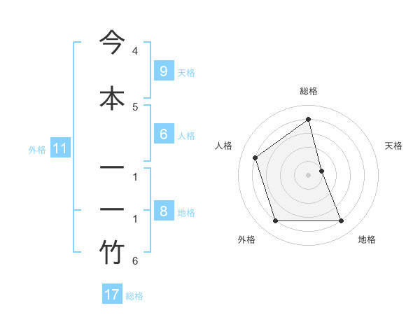 今本 一一竹さんの総格は17画の4点!