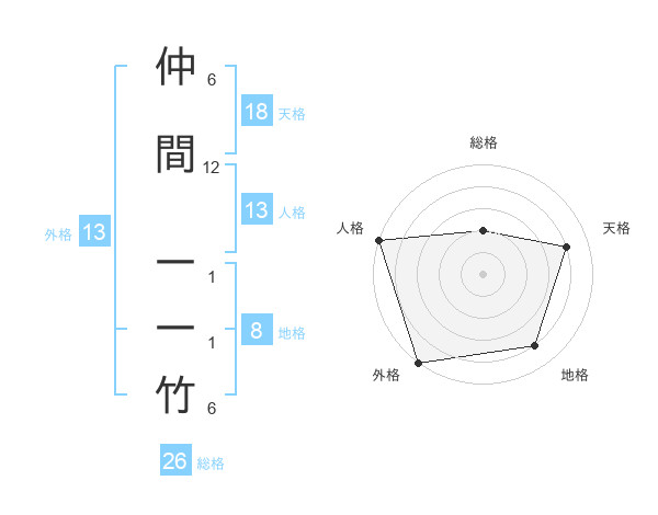 仲間 一一竹さんの外格は13画の5点!