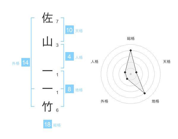 佐山 一一竹さんの総格は18画の4点!