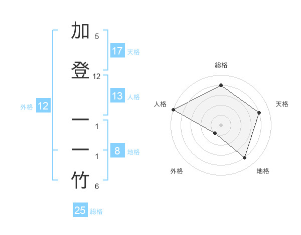 加登 一一竹さんを姓名の画数から五運を鑑定