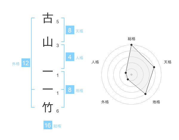 古山 一一竹さんを姓名の画数から五運を鑑定