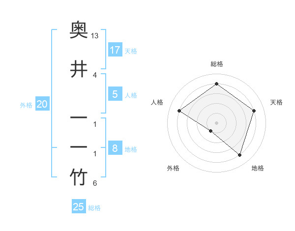 奥井 一一竹さんを姓名の画数から五運を鑑定