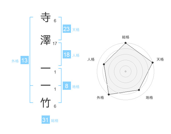 寺澤 一一竹さんを姓名の画数から五運を鑑定