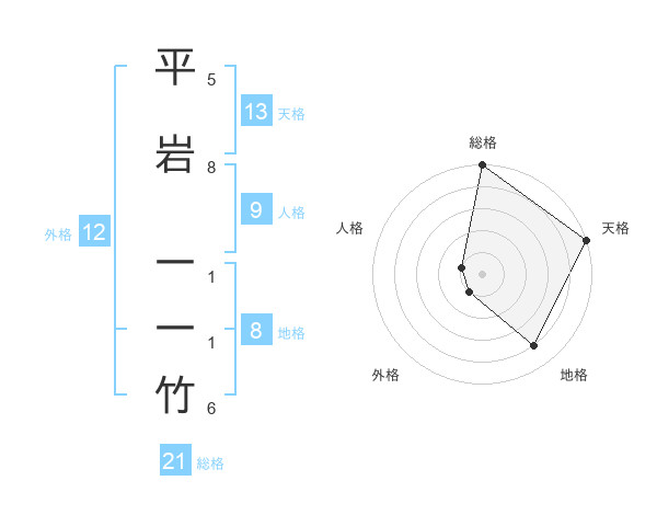 平岩 一一竹さんを姓名の画数から五運を鑑定