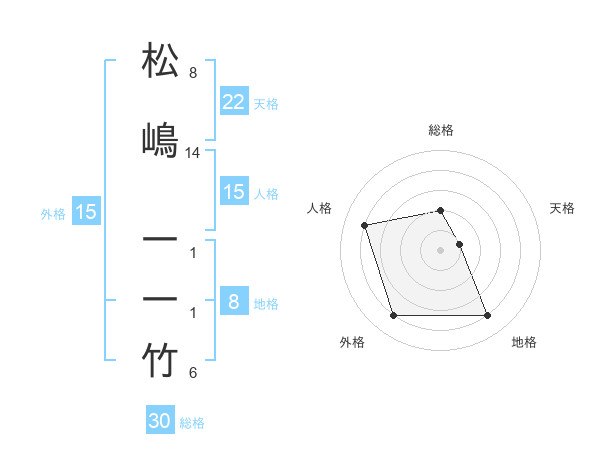 松嶋 一一竹さんを姓名の画数から五運を鑑定