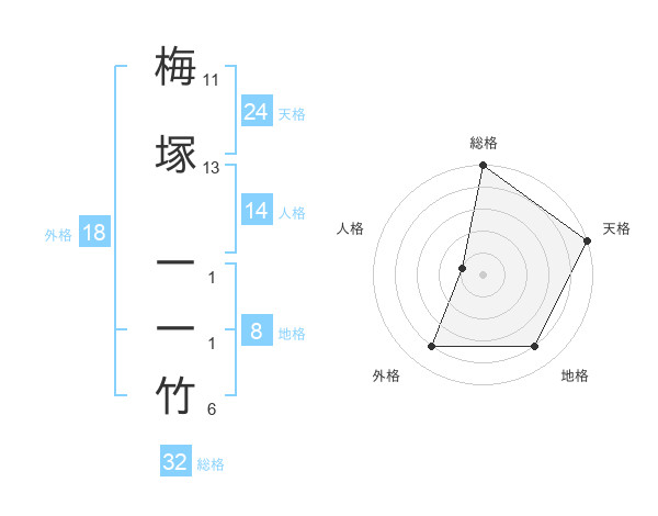 梅塚 一一竹さんを姓名の画数から五運を鑑定