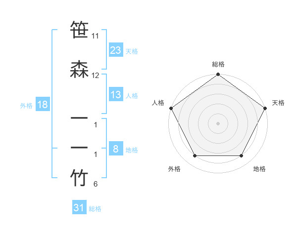 笹森 一一竹さんを姓名の画数から五運を鑑定