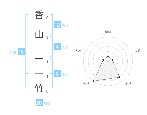 香山 一一竹さんの総格は20画の1点!