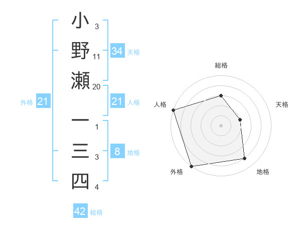 小野瀬 一三四さんを姓名の画数から五運を鑑定
