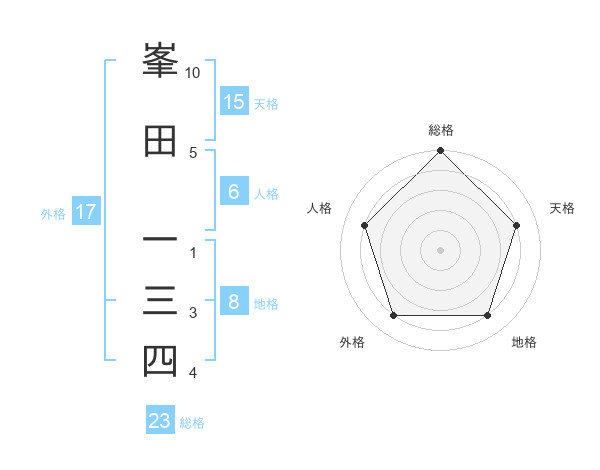 峯田 一三四さんを姓名の画数から五運を鑑定