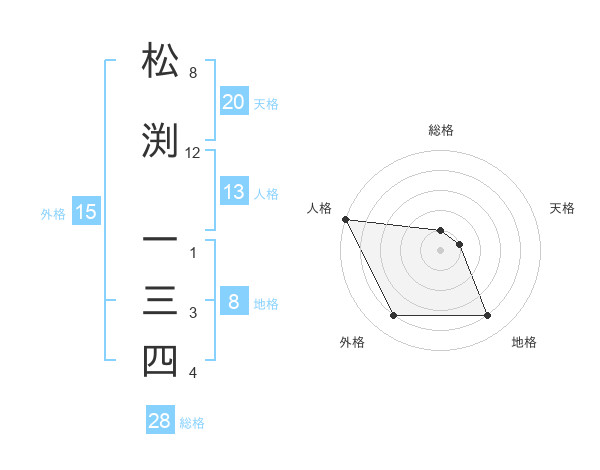松渕 一三四さんを姓名の画数から五運を鑑定