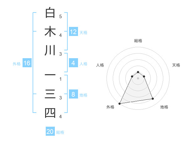 白木川 一三四さんの地格は8画の4点!