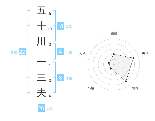 五十川 一三夫さんを姓名の画数から五運を鑑定