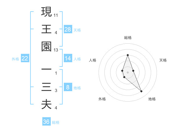 現王園 一三夫さんの天格は28画の1点!