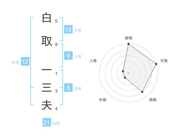 白取 一三夫さんの総格は21画の5点!