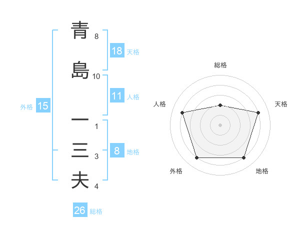 青島 一三夫さんの総格は26画の2点