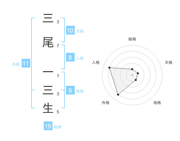 三尾 一三生さんを姓名の画数から五運を鑑定